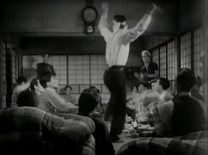 Mais elle est rapidemment remise à sa place, marginale, lorsque Tani, corrigeant ostensiblement son ami devant ses camarades rassemblés pour lui éviter une sanction plus sévère, la pousse de côté sans ménagement. Shimizu, soucieux de rester dans le registre de la légéreté, se garde de souligner la portée dramatique de cette scène mais il a laissé à ce personnage le temps d’imposer au film sa présence discrète et émouvante.