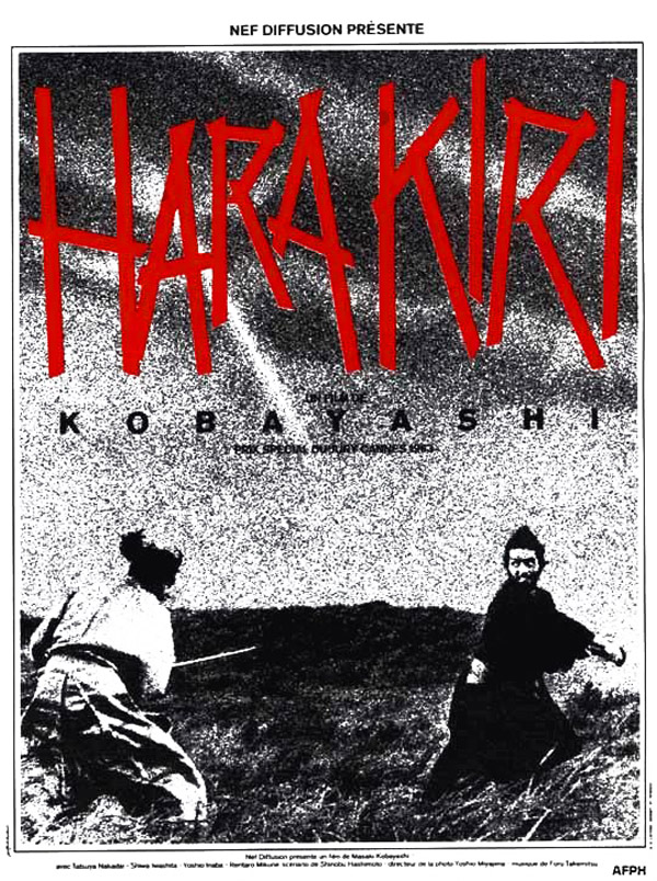 Découvert dans cette fameuse copie restaurée, qui restitue au mieux les superbes contrastes entre ombre et lumière et la sueur collant au front des rônins. Kobayashi signait là un sommet de tension dramatique doublé d’un anti-film de combat en huis-clos (à l’exception de flashs-back flamboyants et d’un final sacrificiel gigantesque). La construction gigogne, en allers-retours tortueux et sophistiqués, lui permet de faire cohabiter plusieurs genres : suspense, mélodrame, chronique naturaliste, film de sabre, brûlot politique... Remontant aux sources du chanbara (le théâtre japonais), "Harakiri" met au jour le jeu de masques de ses personnages, cachés derrière la "façade" de leur bonne conscience et de leur code d’honneur, dont le héros dénonce l’hypocrisie et l’inhumanité - encore reflété par le décor, tout en portes lisses et coulissantes, parcouru par les cadres précis de Kobayashi. Un décor trop propre sur lui, bientôt souillé par le sang et la violence, notamment lors d’une scène initiale de seppuku (avec un sabre en bois !) absolument éprouvante. Politique, esthétique et magnétique, notamment par la présence de son acteur principal, le très charismatique Tatsuya Nakadai.