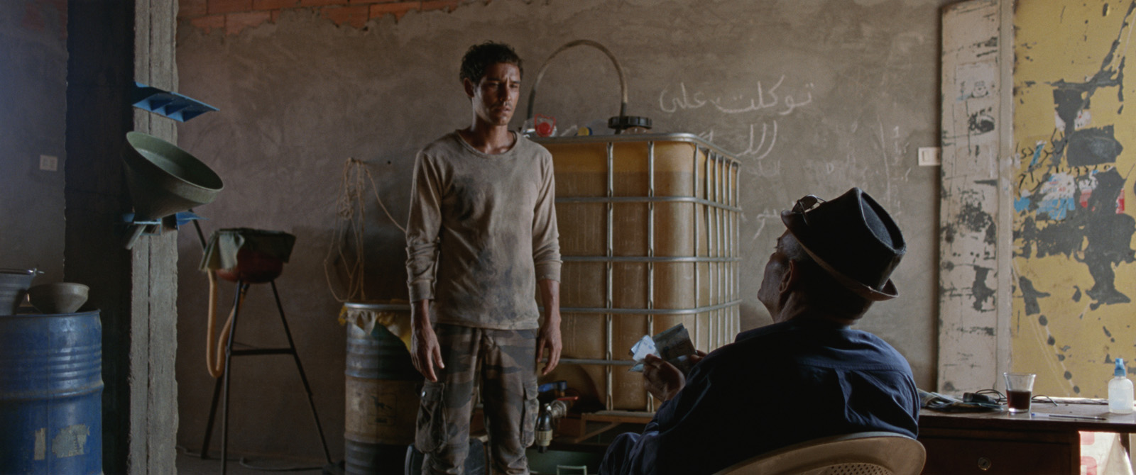 Critique : D’abord ce sont des images des paysages magnifiques, à la manière d’un reportage de voyage. Puis l’image se ternit soudain. La voix off de la sœur du héros parle de ces eaux souillées par le phosphate, des cancers qui s’emparent des ouvriers, et de la crise économique qui ne cesse de répandre la misère dans les rues. Ali vit de petits trafics d’essence. Il squatte un chantier de construction dont le propriétaire est éloigné en Europe. Tous les jours, après avoir acheté les bidons d’essence au noir, il s’installe le long d’un poteau, vend son pétrole aux automobilistes, quand il n’arrose pas de quelques billets la police pour qu’elle le laisse tranquille.
