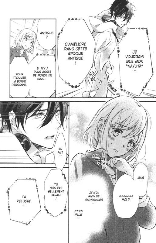 Il y a des introduction in medias res, et puis il y a He came for learning love. Dans le but de nous épargner un prologue qui présenterait un peu trop en détail la vie quotidienne de son héroïne, l’autrice nous plonge directement dans son scénario d’anticipation où L’Armée des douze singes côtoie Blade Runner, le tout à la sauce shojo. On retrouve ainsi un bel androïde en tout point parfait qui débarque, avec une peluche chargée d’expliquer brièvement le sens de cette apparition : les hommes du futur ont besoin des machines pour s’occuper d’eux - les vieux - mais ils sont trop insensibles, d’où un stage dans le début du vingt-et-unième siècle. Cette apparition secoue la vie banale d’An, qui va devoir jongler avec des sentiments contradictoires. De ce fait, les compétitions du lycée, les histoires d’ex et de popularité prennent une tournure assez inattendue, puisque l’androïde se révèle percutant de prévenance, mais assez brutal dans ses interventions. On pensera à un certain Sagara Sousuke, les claques de Chidori en moins, mais la protection tout aussi assurée. Surtout, il y a beaucoup d’humour et de dérision qui entoure cette romance, l’effusion des émotions s’arrêtant souvent à un gag de la protagoniste, ce qui empêche de trop prendre au sérieux une histoire qui se veut d’abord un divertissement.