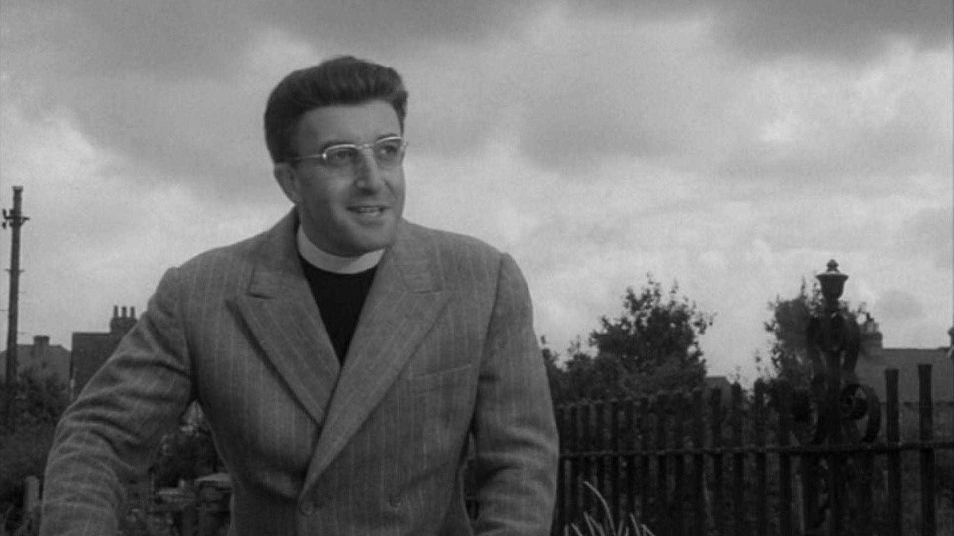 Notre avis : Heavens above, Le Ciel vous regarde en français, tient du jeu de massacre ; en introduisant dans une petite bourgade anglaise un pasteur à part, les scénaristes tirent à vue sur les institutions : l’église, bien sûr, avec ses évêques frileux et amateurs de luxe (Ah ! Le repos sur un yacht, avec le soleil qui caresse la peau !), mais aussi les politiques, la presse, les industriels… Tout le monde en prend pour son grade, dans cette fausse gentille comédie qui ne ménage personne. Car les gens, grands et petits, n’en sortent pas davantage indemnes. De la famille Smith, tout droit échappée de Affreux, sales et méchants, à la riche Mme Despard qui réchauffe son chien sous une couverture électrique, tous sont veules, stupides, et, quand les choses tournent mal, le racisme et la haine de l’autre font surface. John Smallwood, le pasteur, sert de révélateur à cette société, qui « préfère le profit aux prophètes » ; car au fond, c’est bien à une attaque en règle du capitalisme que se livre le film. Un monde de rapaces, où chacun tire comme il peut son épingle du jeu, par la ruse, le vol, ou les aides de l’état.