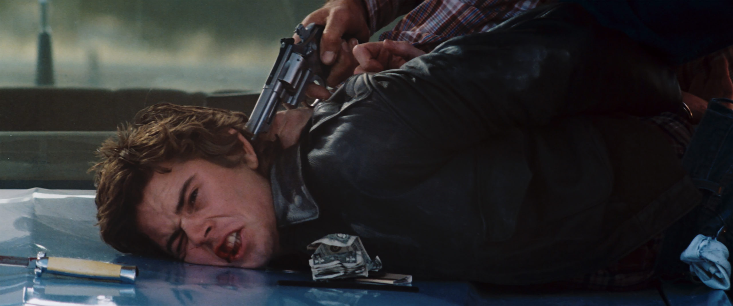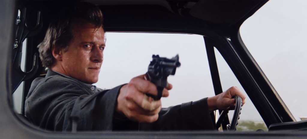 D’ailleurs une conduite automobile sous la pluie, déstabilisant le conducteur et, plus tard dans la narration, une douche faussement purificatrice, semblent des scènes dans la continuité du classique de Hitchcock. Simplement, Robert Harmon introduit très vite le drame et l’horreur, contrairement à son prédécesseur qui préférait faire monter la tension pendant trois quarts d’heure, pour ensuite prendre par surprise son public. On notera aussi l’influence de deux road movies pour le moins flippants, à savoir Duel de Spielberg et Mad Max de Miller. Mais loin d’être tenté par le plagiat, le réalisateur propose un long métrage subtil et redoutablement efficace, dont plusieurs séquences hanteront le spectateur, d’une menace au couteau dans une voiture à un ultime règlement de comptes dans le désert, en passant par un faux repos du guerrier dans une cafeteria locale. Les course-poursuites sont filmées avec maestria, mais sans l’esbroufe de maintes productions du genre. Elles s’inscrivent avec cohérence dans une mise en scène à la fois élégante et efficace.