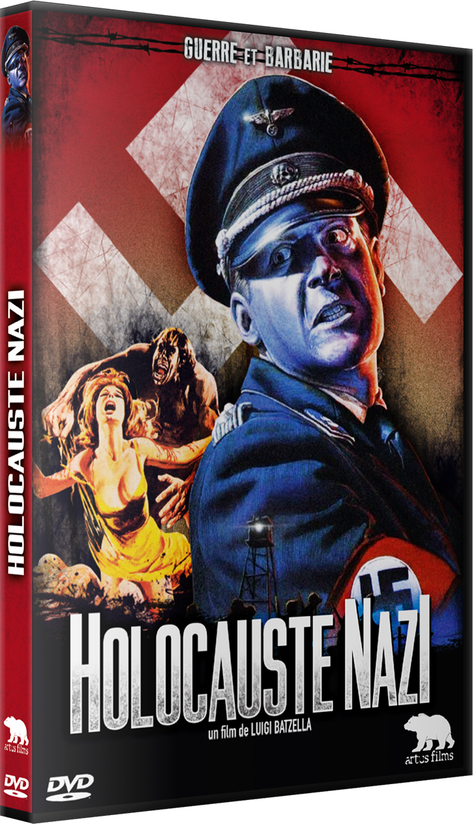 Notre avis : Contrairement à La dernière orgie du IIIe Reich, paru également chez Artus, qui ferait presque passer la nazisploitation pour du grand cinéma, Holocauste nazi est souvent réputé comme un des plus mauvais du genre - et du coup un des plus connu. Flirtant allègrement sur le succès de Ilsa, la louve des SS, le film, signé Luigi Batzella, réalisateur d’une bonne quinzaine de films de genre dans les années 70, se révèle particulièrement bordélique et cinglé dans sa construction même. Recyclant un de ses anciens films, Quand explose la dernière grenade, un mélo sur fond de guerre ultra ennuyeux, Batzella y a ensuite ajouté tout un tas de scènes plus excessives les unes que les autres pour obtenir cet Holocauste nazi tourné pour pas grand chose. Ce sont ces séquences que font de cette bobine nazie un pur régal pour les amateurs de cinéma Bis et qui inspireront même Jörg Buttgereit pour son classique Der Todesking (1990). Rien ne nous est épargné : castration au poignard, dévoration par les rats, électrodes dans le vagin, viols, nécrophilie, infanticide, torture par le feu, tétons coupés, orgie gore, arrachage d’ongles, jusqu’à une scène presque mythique où la créature primitive - la fameuse "bête en chaleur" - créée par la scientifique SS Ellen Kratsch - une "bête en chaleur" aussi incarnée par la magnifique Macha Magall - arrache et avale violemment des poils pubiens. On peut aisément comprendre alors pourquoi le film a été catégorisé comme video nasty en Angleterre et interdit dans plusieurs pays.
