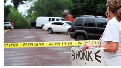 Honk ! se veut d’abord le portrait d’hommes et de femmes touchés, de près ou de loin, par les conséquences désastreuses de la peine de mort. Le film débute par une séquence très forte : le soir de l’exécution d’un condamné, plus de vingt ans après ses actes, la famille de l’accusé croise sans prévenir celle de la victime. La souffrance répond à la souffrance, et leur drame respectif est mis dos à dos. L’exécution n’aura étanché aucun chagrin, accompli aucun deuil, confiera plus loin Mme Kirk, la grand-mère du jeune garçon assassiné. Curtis, ancien prisonnier innocenté et rescapé des couloirs de la mort, révèle à son tour la solidarité secrète qui existait entre les condamnés et confiera cette anecdote révoltante au fort parfum d’absurde : l’un de ses voisins de cellule, après avoir tenté de se suicider, est ramené à la vie par les autorités pénitentiaires avant d’être conduit à son exécution. La machine à broyer l’individu, même détraquée, continue de fonctionner sans que la majorité y trouve quelque chose à redire. A ce consensus, Golda répond en poussant de grands coups de klaxon (nouvel écho au titre du film) à chaque fois qu’elle passe en voiture devant le pénitencier où demeure son fils, en attente de son sort. Un acte que la raison n’explique pas, mais qui revêt un fort pouvoir symbolique.