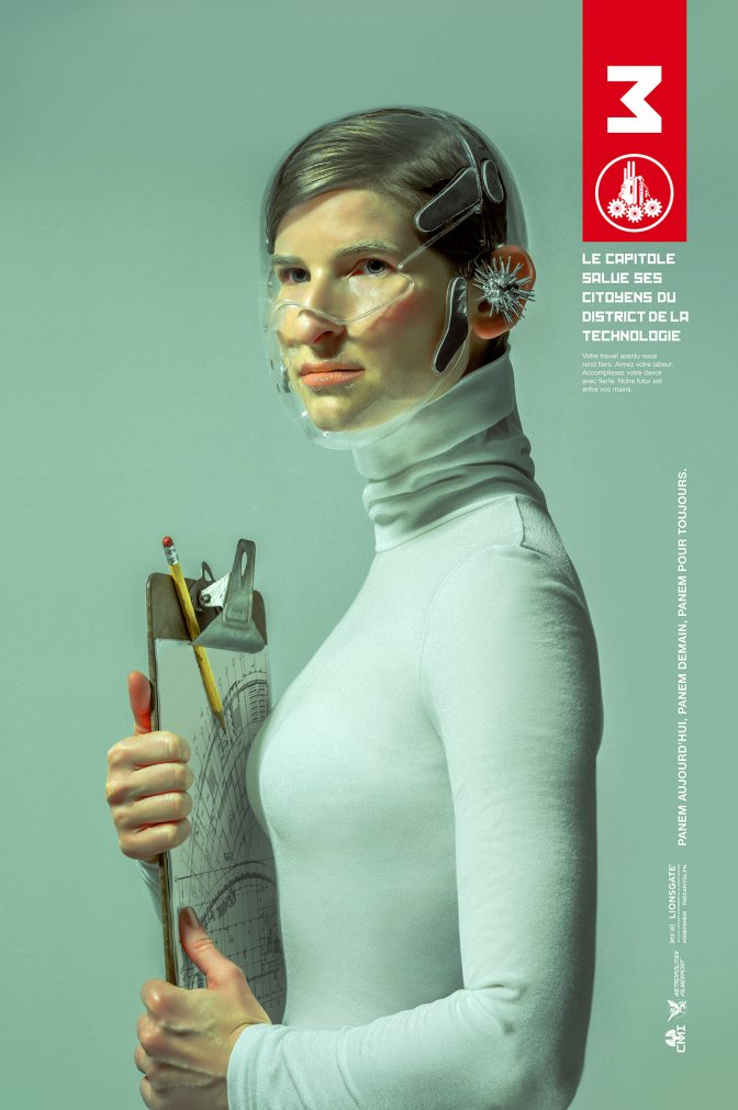 Que cette campagne à la gloire de vos héros renouvelle votre foi et votre confiance dans notre système, un système qui reconnaît votre juste valeur. La charmante Fibre Bissette peut en attester : les codes que vous rédigez, les câbles que vous déployez et les gadgets que vous inventez contribuent tous au bien-être de votre district, mais également à l’intérêt général de Panem. Restez connectés, restés informés. Pour recevoir les dernières informations du Ministère de l’Information du Capitole, inscrivez-vous sur TheCapitol.pn. Le MIC : Pour le peuple de Panem.