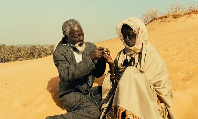 Mais à l’instar de la pièce, le film n’est jamais démonstratif et se présente sous la forme d’une sarcastique comédie de mœurs, quelque part entre la verve des productions Marcel Pagnol et la tradition orale des griots, avec des dialogues d’anthologie : « le monde a fait de moi une putain. Je veux faire du monde un bordel », assène sèchement la vieille dame (indigne ?) à la communauté patriarcale qui l’a jadis humiliée. On admirera par ailleurs la maîtrise des cadrages dans le désert, Mambéty témoignant d’un sens de la gestion de l’espace et de l’étirement de l’action qui n’est pas sans évoquer l’art d’un Sergio Leone. Il faut enfin saluer la qualité de la direction d’acteurs. Mansour Diouf incarne avec justesse ce flamboyant commerçant qui jusqu’au bout restera digne, en dépit de la trahison de ses anciens amis. Quant à Ami Diakate, actrice non professionnelle découverte sur un marché de Dakar, elle crève littéralement l’écran dans un rôle qui fut aussi joué par Ingrid Bergman, Maria Schell, Mary Marquet ou Line Renaud.