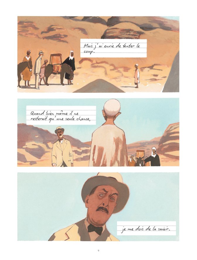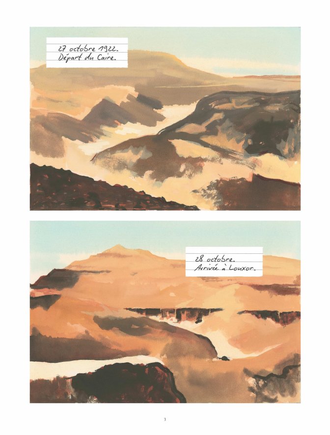 Critique : Depuis ses débuts, Manuele Fior élabore une œuvre variée, riche, profonde et exaltante. Une nouvelle fois, il entremêle les récits et les époques. Ici, les parties consacrées à la rencontre entre Teresa et Ruben font parfois place à la découverte du tombeau de Toutankhamon par Howard Carter. Dans les deux récits, interviennent le doute, des nuits agitées, l’ouverture sur l’inconnu et sur l’altérité en guise de palier dans une existence.