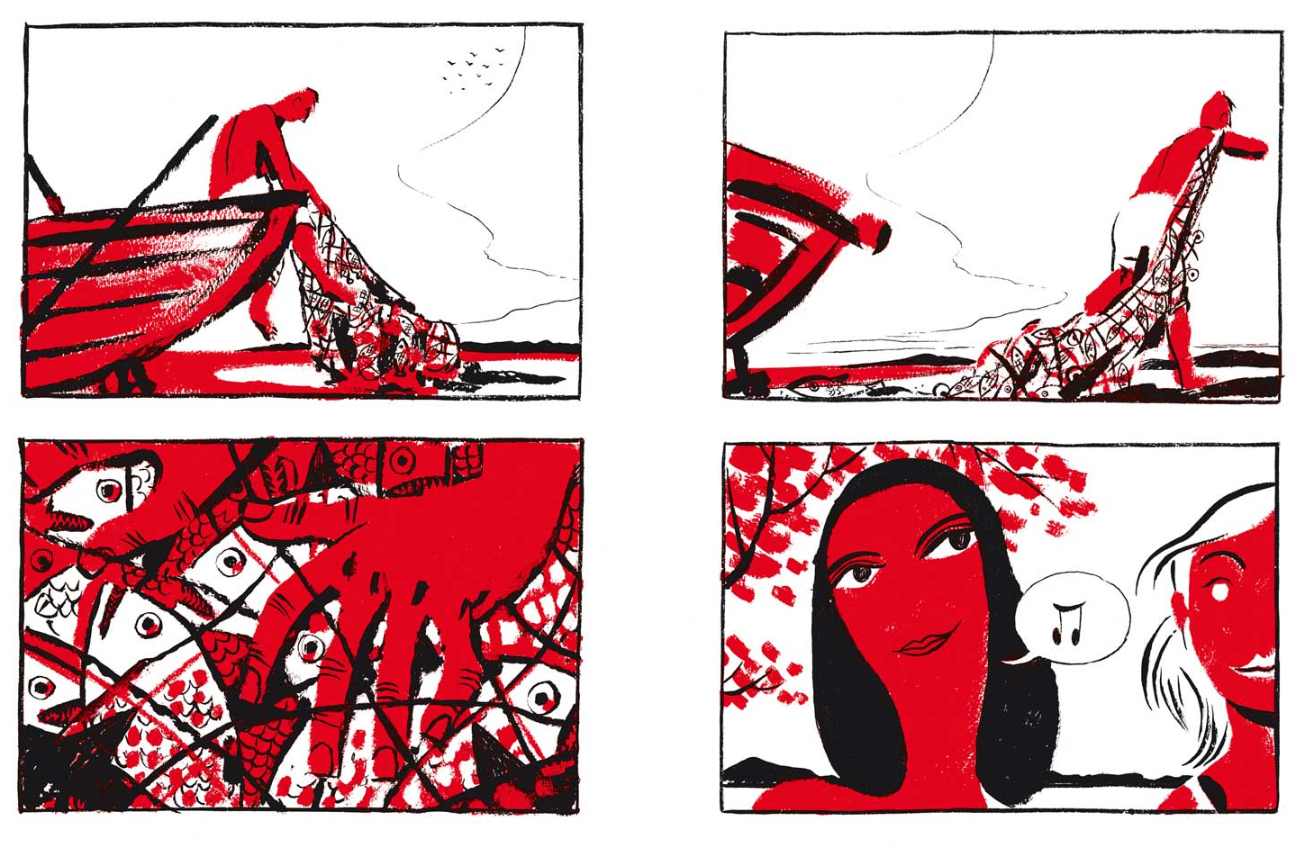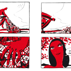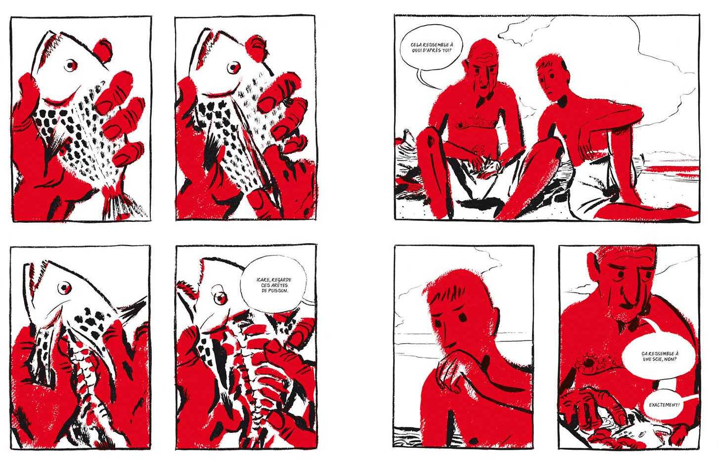 Avec cet album, il paraît franchir un cap. Architecte de formation, il construit avec une précision diabolique l’ensemble de son récit, puis le découpage de chaque page et de chaque case. Il utilise également la bichromie - ici, le noir et le rouge - de manière extrêmement travaillée, jouant sur des effets de clarté ou d’opacité.