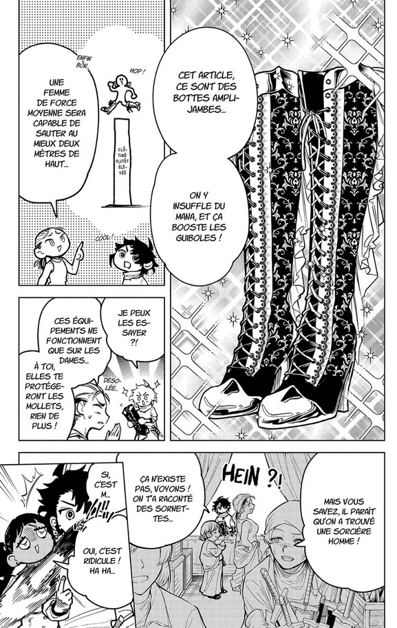 Mais Ichi the Witch n’est pas qu’un énième shonen : les mangakas développent un univers novateur tout en s’inspirant de séries qui ont bercé leur enfance ! D’ailleurs, saluons le sens du détail de Shiro Usazaki à l’image des splendides « bottes ampli-jambes » ! On sent qu’elles maîtrisent toutes les deux parfaitement le monde qu’elles ont créé leur permettant de jouer sur ses codes avec humour et intelligence.