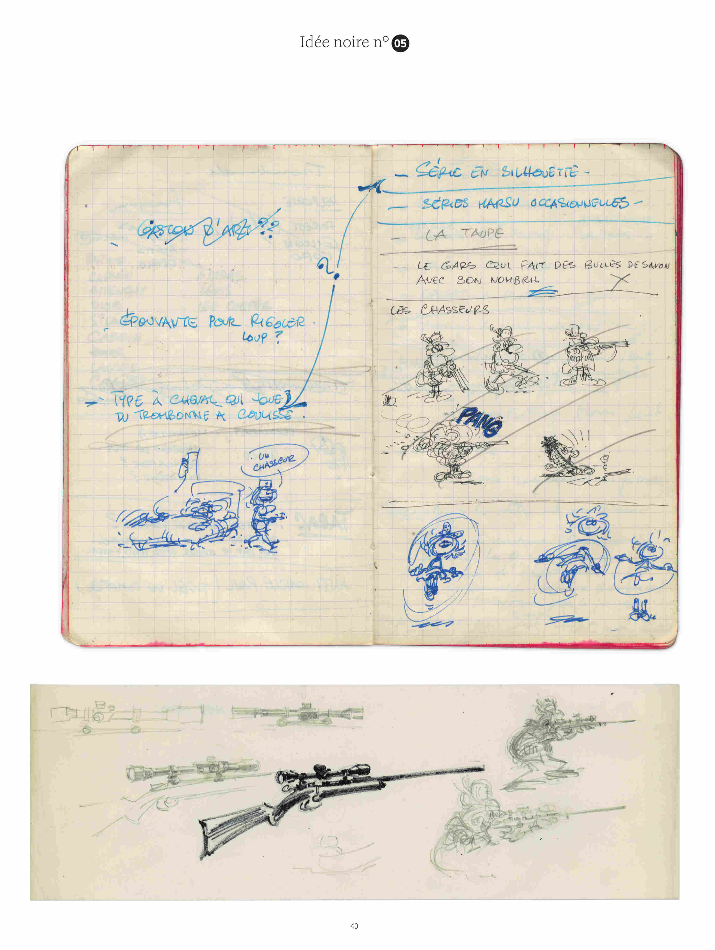 Et effectivement, on rit beaucoup devant ces scènes occasionnellement traumatisantes. Mais ce qui devient passionnant dans cet ouvrage, c’est de découvrir comment l’on part du croquis dans un carnet pour arriver à un gag fini.