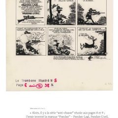 Des agrandissements sur les planches originales de Franquin permettent de réaliser le détail et la finesse de son travail, d’autant plus étonnant quand on sait qu’il ne dessinait pas sur des feuilles beaucoup plus grandes que le format final d’impression.