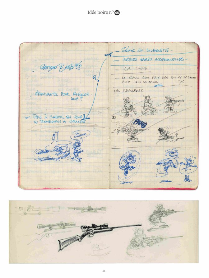 Résumé : {Idées Noires. Les Origines} explore la naissance et la création des légendaires {Idées Noires} de Franquin. Croquis, dessins, scénarios, photos, planches finalisées, présentations d’originaux, commentaires de Franquin sur son travail : c’est tout un processus de création qui nous est présenté.