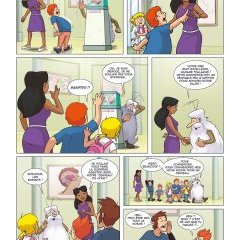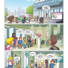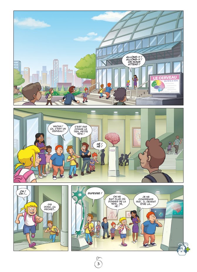 Comment faire découvrir au plus jeune l’organe le plus important de son corps ? FR3 et Canal+ avaient réussi le pari d’intéresser les plus petits en créant des séries animées qui permettaient de découvrir l’Histoire ou la biologie (toujours diffusée sur France 4) de manière ludique. Sous l’égide de Maestro, vieux sage, mélange de Léonard de Vinci et de barbe vivante, plusieurs élèves vont être initiés au développement et au fonctionnement d’un organe du corps humain. Les éditions Soleil ont choisi d’éditer en format BD les aventures du corps humain, et après le cœur c’est forcément le cerveau qui débarque. Alors qu’une classe d’élèves veut comprendre lors d’une exposition les connexions neuronales, la meilleure partie réside dans dans le voyage intérieur. Globules rouges et blancs sont ainsi personnifiés, chaque détail du corps se trouvant symbolisé ou bien décrit. La mémoire, les réflexes, l’amour sont ainsi expliqués d’une façon pédagogique, puisque c’est un cheminement tranquille dans les recoins du cerveau qui s’accompagne de références précises et scientifiques. Chaque question obtient donc une réponse, tandis que les bêtises des élèves viennent apporter quelques gags faciles, typiques de la série animée, avec la violence des deux têtes de turc reconnaissables à leurs nez rouges, dont le mini sosie de Sarkozy.