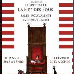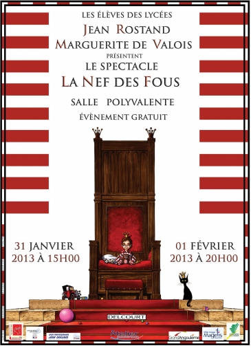 - 1ere info off : la nef des fous * se donne en spectacle, demain. Les élèves des lycées Jean Rostand et Marguerite de Valois présentent cette adaptation demain, 20 heures en salle polyvalente (infos sur leur site : http://la-nef-des-fous9.webnode.fr/)