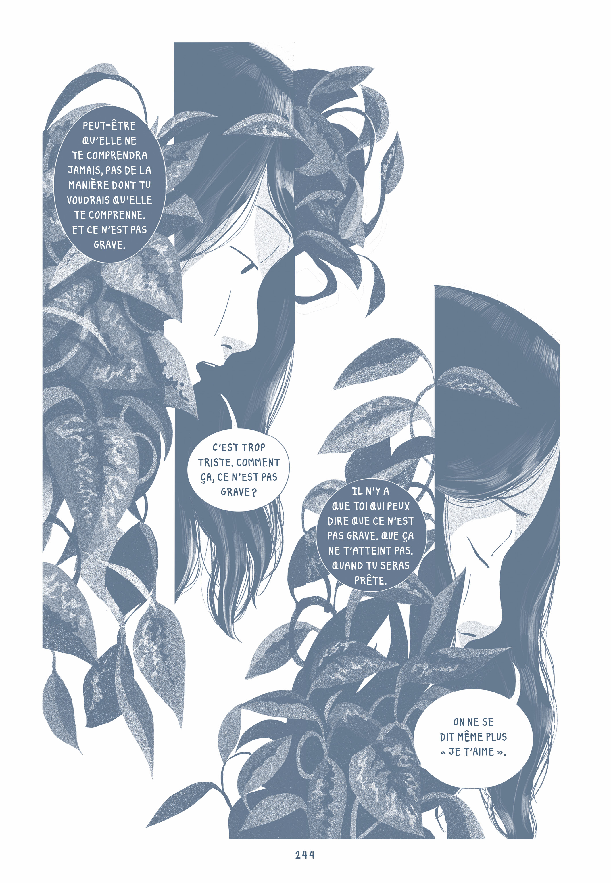 In Limbo porte haut les questions d’identité et de santé mentale et constitue une véritable catharsis pour cette jeune autrice talentueuse, qui signale dans la postface avoir passé cinq année pour réaliser cet album. On est touché par le destin de cette adolescente mal dans sa peau, tiraillée entre deux identité, et que les parents – enfermés dans une culture du résultat – ne parviennent pas à comprendre, au point que la mère de l’autrice passe sa frustration sur sa fille. Deb JJ Lee met en évidence la pression sociale qui pèse sur les enfants coréens, vecteur d’un véritable mal-être. L’autrice s’arrête également sur la lente acceptation de soi, un thème universel qui devrait toucher adolescents et jeunes adultes, acceptation rendue ici plus difficile par l’impression d’être différent des autres.