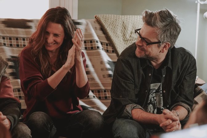 C’est probablement l’aventure la plus folle à vivre pour un couple. Déjà, beaucoup pensent qu’il est plus facile d’adapter une œuvre existante que de créer une histoire originale. C’est faux. Adapter, c’est trahir. Nous avons donc trahi son livre ensemble, main dans la main. À la lecture, j’étais touchée par le personnage d’Arthur Berthier, ce critique de rock désabusé. Mais je tenais à l’amener vers quelque chose qui me tenait plus à cœur, en l’occurrence le milieu associatif. Tout en respectant l’humour et le côté décalé du roman. J’avais besoin d’y mettre ma patte, notamment en créant de toute pièce le personnage de Mathilde, cette femme engagée dans la protection des migrants et qui va inciter Arthur à s’ouvrir davantage au monde.