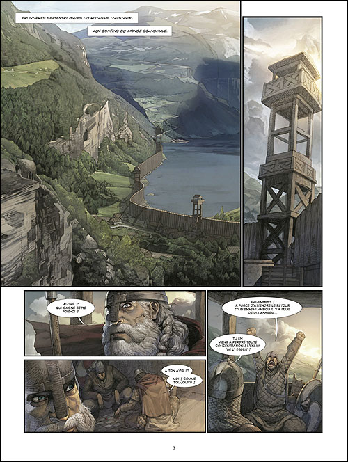 Sylvain Runberg : Les références premières sont les différentes mythologies dont je me suis inspiré pour créer cet univers, celle issue de la Scandinavie médiévale étant celle qui est la plus évidente. Sinon, le « Trône de Fer », je ne l’ai jamais lu, mais j’attends avec impatience d’en voir l’adaptation à la télévision par HBO. Mais oui, des séries comme « Rome » ou les « Tudors » ont été des sources d’inspiration au sens où j’aime les récits épiques, réalistes et sans concession par rapport à un contexte donné. Si « Konungar » a aussi sa part d’imaginaire, je veux que ce que vivent les personnages puissent toucher le lecteur. Sigvald, Rildrig et Elfi ont des destinés extraordinaires, au sens où elles sont hors du commun, mais ce sont avant tout des êtres humains, comme vous et moi, et montrer quels sont les différents aspects de leur psychologie est aussi un aspect important de ce récit. Ils ont leurs faiblesses, leurs défauts, leurs doutes, ils souffrent, ils tentent de survivre, et tout peut leur arriver, même le pire.