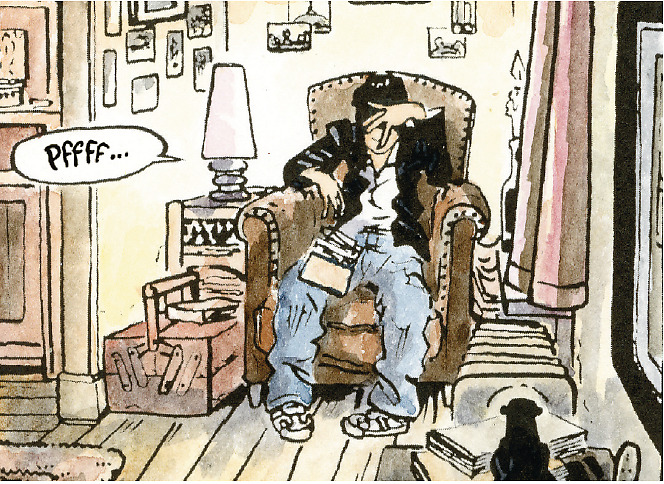 Pour sa première édition, l’album avait été dessinée à la plume et texturisée par un lavis. Il avait pourtant été imaginée par son auteur en couleur. Alors avec cette nouvelle édition, Simon Hureau a pu pleinement faire aboutir son projet. Il est indéniable que les couleurs apportent beaucoup à l’ambiance générale du récit. Celles-ci soulignent les contrastes entre les scènes de jours et de nuit, mais aussi les caractères des personnages. Dans cette bande dessinée où les objets de toute sorte et dans des états de dépérissement plus ou moins avancés abondent et où la flore est luxuriante, la couleur vient donne à tous ces amoncellements de nature et d’objets une densité supplémentaire ! On a parfois l’impression d’étouffer, mais cela n’est surement pas involontaire. Ça déborde de partout et si ça gêne certains, ça en réjouit d’autres dans cette intrigue….
