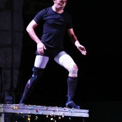 Notre avis : La fiesta d’Israel Galvan ressemble aux after qu’il a connu enfant lors-qu’après la représentation, ses parents danseurs et les autres artistes se retrouvaient entre eux pour fêter la nuit. On y essayait des pas nouveaux, on s’y expliquait, riait, pleurait, réconciliait et chantait intensément sans soucis du public. Le souper à peine mis de côté, le petit Israel faisait à son tour le show debout sur les tables. C’est le souvenir de cette ambiance de partage familial qui a inspiré ce spectacle où chacun s’est mis à l’aise, costumes de scènes défaits. Israël Galvan, le fier espagnol, entre en scène en descendant les gradins sur les fesses, sifflet en bouche, tandis que les convives de sa troupe mettent l’ambiance sur scène, habillés comme à la maison, en survête à bandes ou en slip pour le chanteur Niño de Elche. Cette première scène annonce la pantalonnade qui suit. En levant le rideau sur cette coulisse de sa vie, Galvan semble vouloir également en profiter pour trouver la liberté de déconstruire son savoir pour le moderniser plus encore.