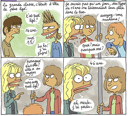 La dessinatrice donne vraiment de sa personne et nous livre son intimité la plus « chair », mais partage toujours avec autant de pugnacité ses arguments pour faire front aux réflexions indélicates de nos ados ou nos parents trop contents eux aussi de voir qu’on s’en prend plein les dents et bientôt le dentier au grand complet !
