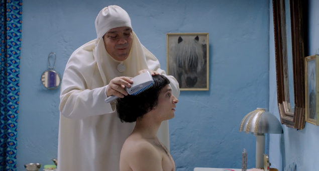 Devant cette réelle faculté à rendre son récit passionnant, on ne pourra que regretter la superficialité avec laquelle Sattouf agrémente son film de messages politiques d’actualité – que vient faire le mariage homosexuel dans cette comédie qui en est totalement détachée, à part provoquer un effet comique totalement avorté ? En plus de rien apporter au scénario, cette juxtaposition de gags donne l’impression amère que Jacky au royaume des filles n’est guidé que par l’attrait de la situation qui, par une totale incongruité, marquera forcément les esprits. De même, il y a de quoi s’étonner de l’évolution que prend son scénario puisque, en réponse aux obscurantismes, Sattouf offre un happy end qui fait de ses personnages les martyres heureux d’un système qui pourtant les matraque ; personnages auparavant guidés par des idéaux disparaissant aussitôt Jacky devenu roi. La parole politique, pourtant bien réelle, de ses figures méritait-elle d’être muselée au profit d’une succession ininterrompue de gags ? Pas sûr.