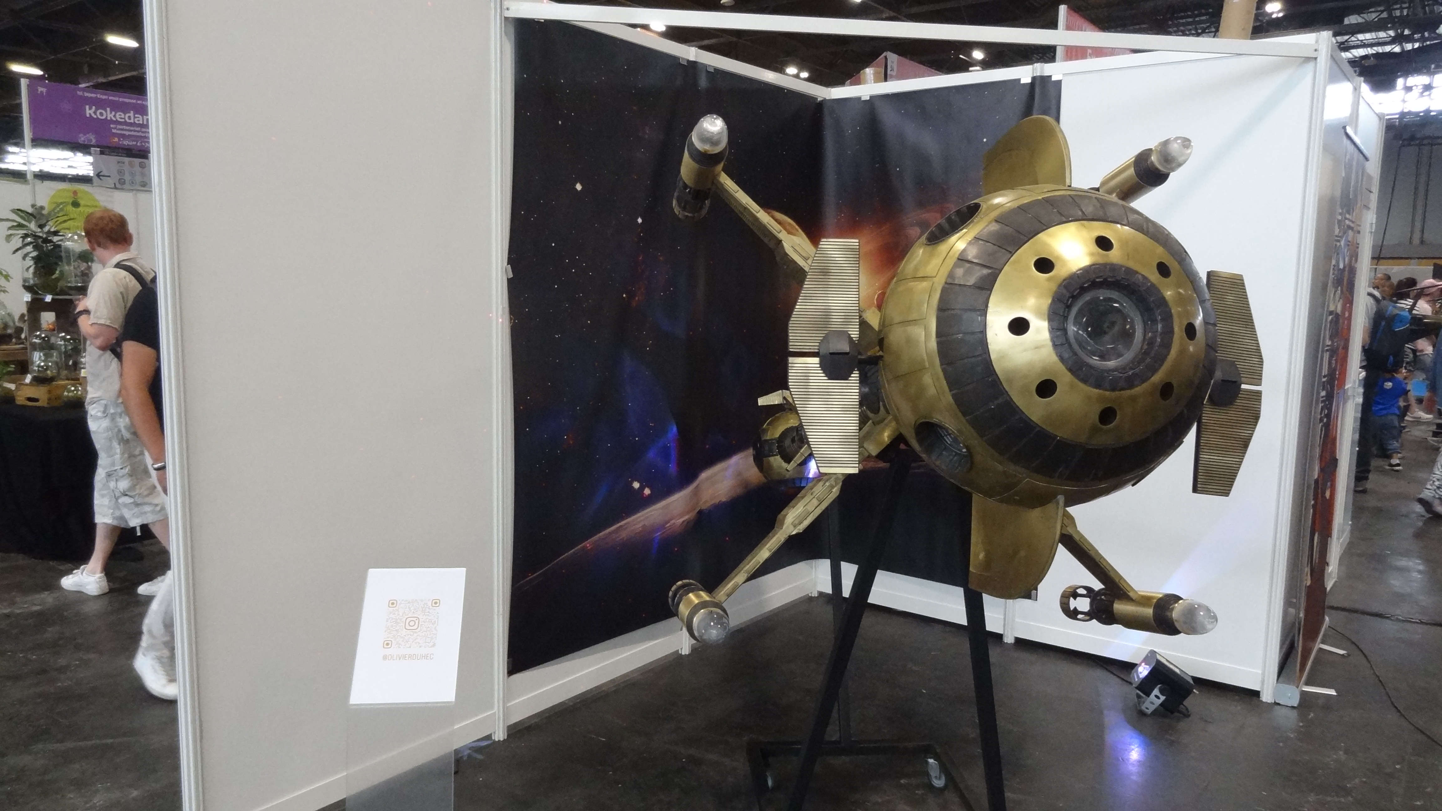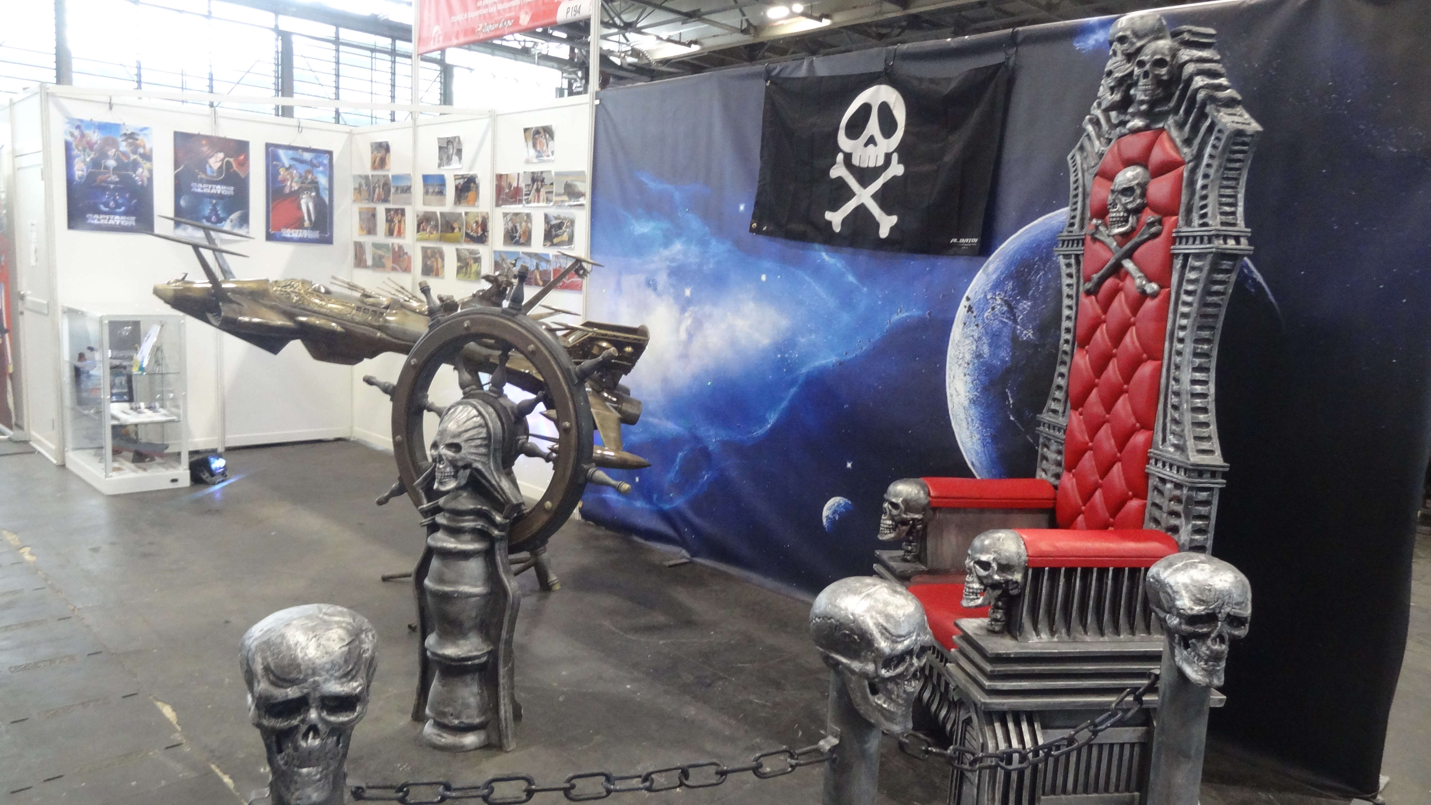 Trois affiches d’Albator, quelques goodies, plusieurs photos émouvantes de Matsumoto sur un pan de mur et une scène reconstituée pour présenter le siège du capitaine de l’Atlantis, avec la légendaire barre, et une magnifique sculpture géante du vaisseau réalisée par Olivier Duhec, dont d’autres œuvres étaient exposées à côté, le vaisseau du capitaine Flam ou encore celui d’Ulysse 31.