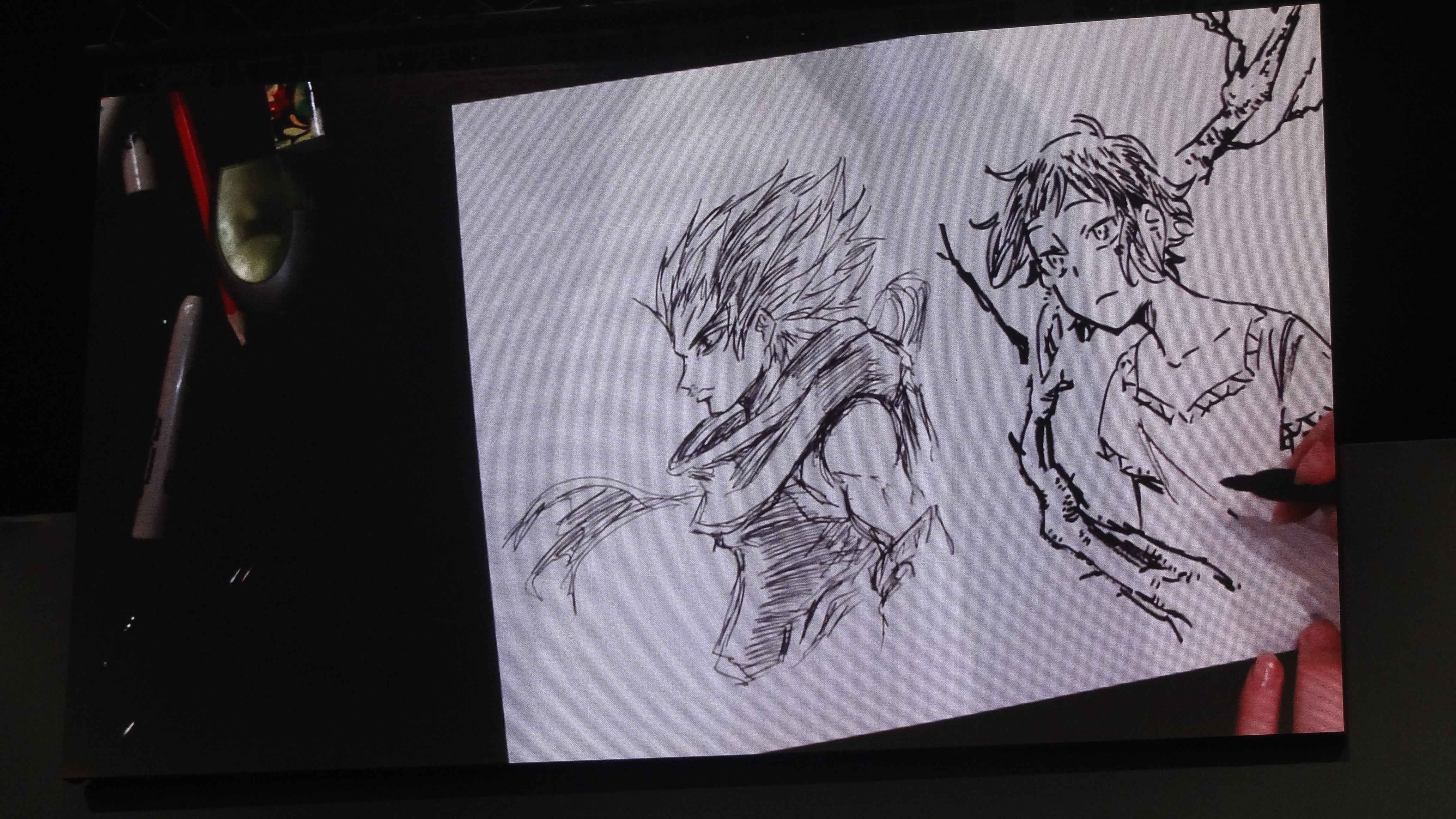 Ce sera le mot de la fin, car les deux auteurs doivent se rendre en dédicaces. Mais notons qu’en plus de nous informer sur leurs méthodes de travail, leur parcours, les deux auteurs ont dessiné au fil de la discussion. Des dessins que nous avons pu voir grâce à l’écran et au système de caméra mis en place pour la conférence.