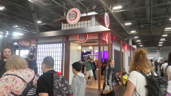 Mais laissons Takemichi tenter d’empêcher la mort d’Hinata et changeons d’exposition. L’autre manga présenté n’était rien moins que DemonSlayer de Koyoharu Gotoge. Ce manga de vingt-trois tomes a été publié au Japon dans Shonen Jump et c’est Panini Manga qui a récupéré la licence pour la France. L’exposition était plus compacte que celle de Tokyo Revengers, mais quelle mise en scène ! Et surtout, quelle foule ! Impossible de circuler dans cette petite surface quasiment dès le premier jour de la Japan Expo.