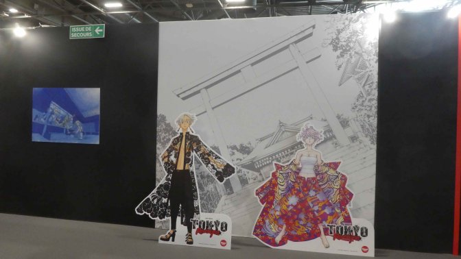 L’autre grosse exposition était celle consacré à la série Tokyo Revengers de Ken Wakui. La série s’est terminée cette année avec son trente-et-unième volume publié dans Shonen Magazine au Japon et par Glénat en France.