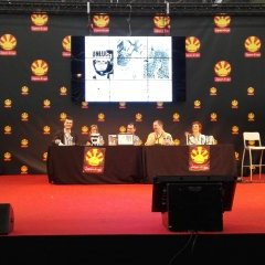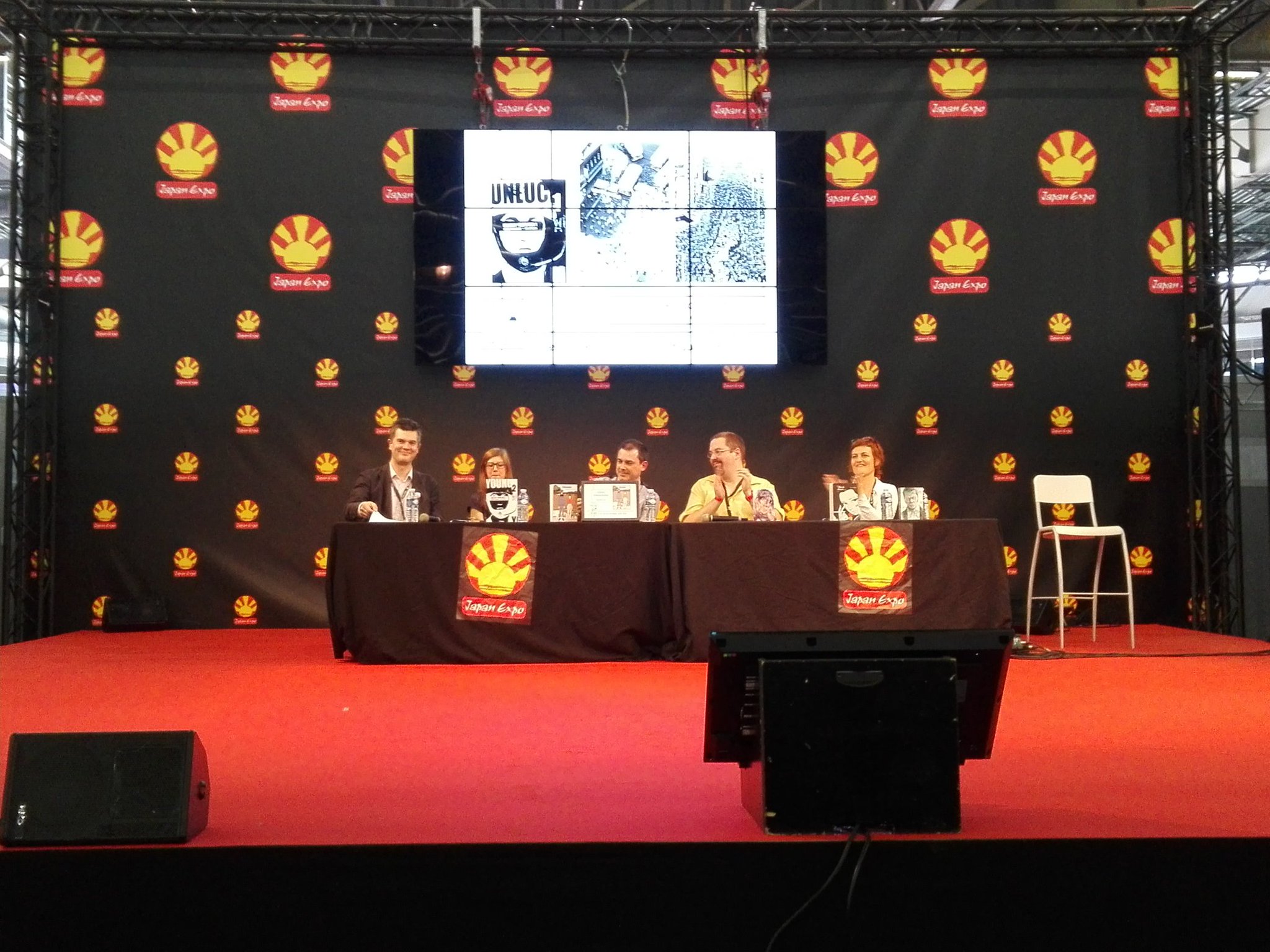 La remise du Prix ACBD Asie s’est fait lors de la première journée de Japan Expo. Au centre, l’éditeur du Lézard Noir reçoit le prix encadré.