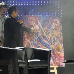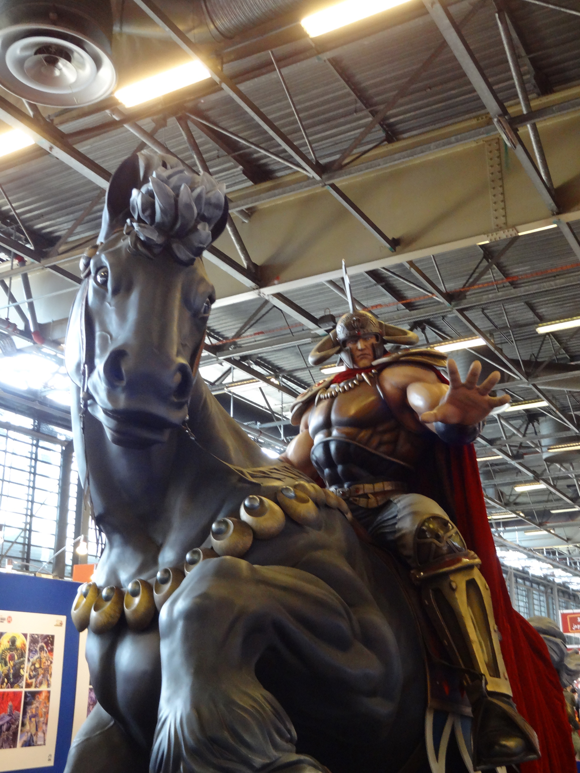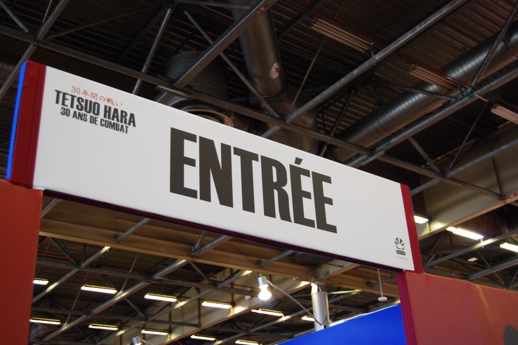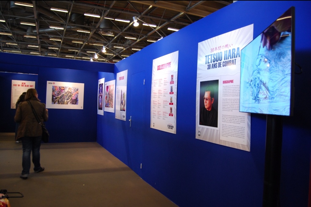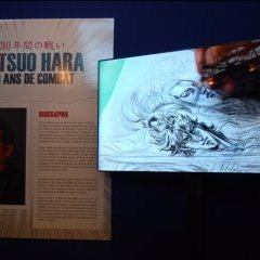 Mais la Japon Expo ne s’arrête pas là, car en dehors des séances de dédicaces avec Tetsuo Hara, elle nous offre une exposition tout en couleurs. Plusieurs œuvres de Tetsuo Hara sont représentées, en papier ou en vidéo sur des écrans. L’expo est ponctuée de quelques cartons explicatifs, mais le summum reste la magnifique statue de Raoh.