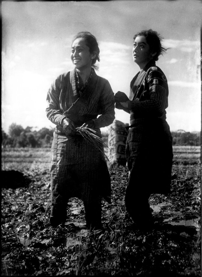Car ce pays, si déraciné soit-il, a une terre riche et féconde qui ne demande qu’à nourrir son peuple condamné si longtemps à la misère et au rationnement. Dans un société dévoyée que Kurosawa s’emploie à décrire dans nombre de ses films, ce retour à la terre, à une certaine tradition, gage d’une identité commune, semble fondamental. « Nous aurons toujours Tara », disait Scarlett O’Hara dans Autant en emporte le vent. Armée d’une simple pioche, Yukie s’épuise dans la boue pour faire revivre cette terre qu’elle a fait sienne. La pluie déferle, détrempant les corps tragiques magnifiés par la caméra du maître. Leur détresse et leur joie se font notre. Yukie voulait voir « ce que vivre veut dire ». Au terme de son parcours initiatique marqué par les épreuves de son temps, elle peut enfin choisir ne ne plus subir, mieux, de devenir celle par qui la vie jaillit. Ainsi le film ouvre sur d’autres horizons et d’autres combats, en particulier celui, universel, de la condition des femmes ouvrières. On ne saurait trop conseiller de revoir Riz amer.