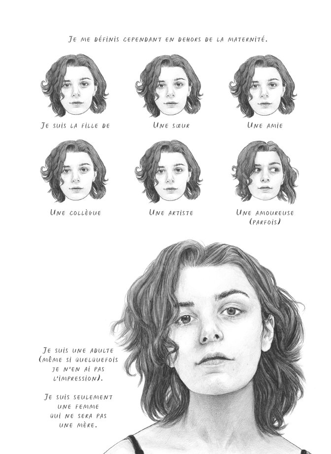 Enfant, comme beaucoup de petites filles, Catherine se voyait devenir mère à son tour. Pourquoi cette aspiration ne s’est-elle finalement pas réalisée ? Pour y répondre, l’autrice livre un récit introspectif, où elle revient ses les étapes de sa vie qui l’ont mené à ne pas avoir d’enfant, sur les conséquences sociales de ce choix et le regard qu’elle porte sur elle-même. L’écriture à la première personne est scandé par des témoignages écrits de femmes qui (par choix ou par contrainte) ne sont pas devenues mères. L’ensemble est porté par un dessin hyperréaliste réalisé au crayon qui, au-delà de montrer le quotidien de l’autrice-personnage, joue volontiers sur les symboles. La dessinatrice partage notamment sa passion pour les plantes, qu’elle représente avec beaucoup de talent. Il en découle une atmosphère poétique et vibrante qui participe grandement à la qualité de cet album, qui a reçu en 2024 le prix de la critique ACBD de la bande dessinée québécoise. Une lecture enrichissante sur un sujet de société on ne peut plus actuel.