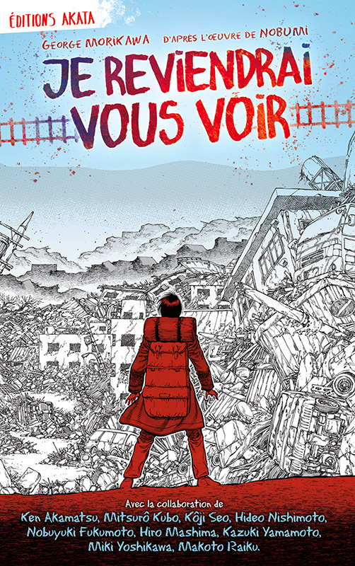 Le héros Nobumi est un vrai auteur de livres pour enfants, père de famille engagé qui a décidé de partir proposer son aide en mars 2011. Son récit a été illustré par George Morikawa, qui a également fait appel à une flopée de dessinateurs mangas (Kôji Seo, HideoNishimoto, Miki Yoshikawa...) pour collaborer sur un ouvrage humanitaire. Un personnage sur une page, une scénette sur un coin, sans que l’on s’en aperçoive vraiment chacun des auteurs pose sa patte sur l’œuvre, et donne finalement le sentiment d’une réelle fraternité. Le témoignage final des auteurs renforce cette impression de désintéressement et de charité vrais, qui font de Je reviendrai vous voir quelque chose qui dépasse le simple manga.