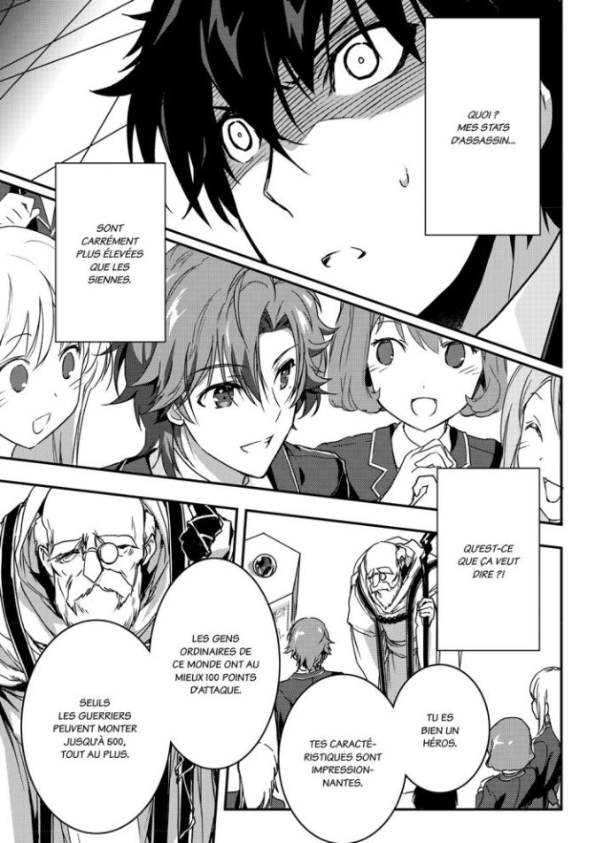 Ce genre fait fureur au Japon et ce shonen reste dans la lignée, pour l’instant, de ce que nous avons déjà pu voir. Le titre peut laisser croire à une histoire en partie humoristique mais ce n’est pas vraiment le cas ici, à part deux trois situations comiques. Le schéma demeure classique : ce groupe de jeune transporté ailleurs va avoir parmi eux, bien sûr, un héros potentiel doté de statistiques énormes... L’originalité réside dans le fait que le héros reconnu par tous n’est pas Akira, le héros de l’histoire. Mais comme le jeune lycéen est notre protagoniste, ce subterfuge ne fait pas long feu.
