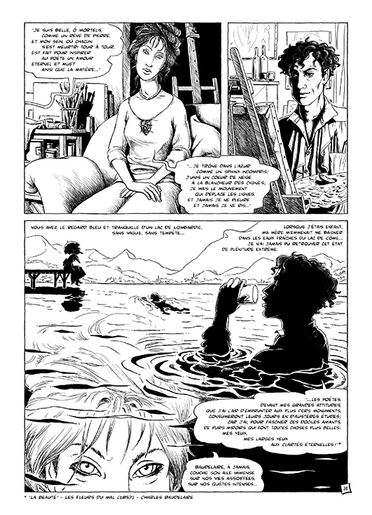 Le trait est vif, dynamique, utilisant tout l’espace possible et sous tous ses angles. On ne se lasse pas de la mise en page qui nous permet de flotter autour des personnages et leur univers.