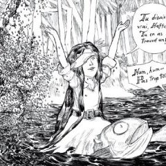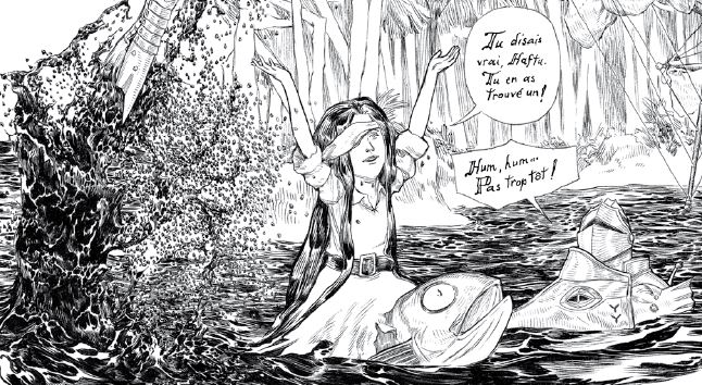Port Elisabeth, Jamaïque, 1728. La Fille Maudite du Capitaine Pirate part à la recherche de son père disparu, l’un des redoutés flibustiers des mythiques mers d’Omerta. Cette héroïne intrépide nous entraîne rapidement dans des aventures marines et même sous-marines, à la rencontre de pirates tordus et teigneux, de créatures mythiques et autres fantasmagories se dévoilant comme des poupées russes. Sorte d’Alice au pays des pirates, ce récit rempli d’humour est servi par un dessin incroyablement détaillé que l’on croirait tout droit sorti d’une gravure du XIXe.