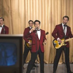 Il fut un temps où les Four Seasons étaient aussi connus que la chaîne d’hôtel de luxe du même nom. Du style, de la maîtrise, de la classe, une voix de tête déroutante et sans égale et une envie irrépressible de s’en sortir en s’abandonnant à leur art : autant d’ingrédients qui ont propulsé ces quatre autres garçons dans le vent au sommet de la gloire. Si Eastwood se focalise peu sur l’accession au trône et la transformation des quatre jeunes gens en icônes populaires sacralisées, c’est pour mieux, en creux, nous conter une toute autre histoire, plus personnelle, celle d’un groupe de potes à l’amitié solide qui tente de sortir de la rue par tous les moyens sans pour autant en oublier leurs racines italo-américaines. Ce qui intéresse Eastwood, c’est les liens qui unissent ces frères de scènes si dissemblables et pourtant connectés par la seule chose qui ait réellement de l’importance : la même passion pour la musique et les planches. Comme dans les films de gangsters de Martin Scorsese, auxquels le réalisateur ne cesse de faire des clins d’œil, Eastwood, faisant directement s’adresser ses personnages -en alternance de manière à changer de point de vue- au spectateur, nous fait immédiatement pénétrer dans l’intimité de ces petites gouapes qui résistent à l’appel de la rue grâce à leur talent naturel pour la musique. Une manière de rappeler qu’il est possible de s’en sortir, à condition d’avoir du talent pour quelque chose et de vraiment en vouloir. Un mythe du self made man américain qu’Eastwood ne cesse d’ailleurs de relativiser par la suite. L’utilisation de Christopher Walken, « The King of New-York » en mafieux émotif et protecteur finit de séduire et on se laisse embarquer aux côtés de ces jeunes à la maladresse si attachante, dans un univers sixties rétro parfaitement assumé par maître Eastwood. Le charme opère, malgré encore un certain formalisme, et on se délecte de dialogues décalés cousus mains et pétris d’une bonne dose d’ironie. Malgré ses airs de biopic aérien au charme suranné qui semble survoler les principales étapes de la vie du groupe de la formation à la séparation et son extraordinaire BO reprenant les principaux tubes de The Four Seasons (Can’t Take My Eyes Over You, Rag Doll, Sherry, Big Girls Don’t Cry, Bye Bye Baby), Jersey Boys n’est pas Mamma Mia§ ! (loin s’en faut) et offre une véritable complexité une fois dégagé du vernis nécessaire au packaging de tout show musical digne de ce nom.