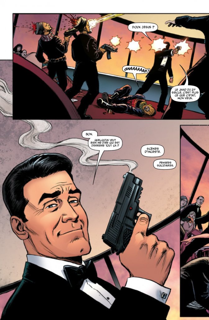"Je m’appelle Bond, James Bond". Cette réplique, vous la connaissez tous. Elle incarne l’espion parfait, le charme anglais, le pouvoir de séduction, le tout réuni dans l’un des personnages les plus célèbres du XXème siècle : James Bond, créé par Ian Flemming. Maintenant, que se passe t-il lorsque Garth Ennis, le co-créateur de Preacher, s’associe à Russ Braun afin de casser le mythe de l’espion anglais ?