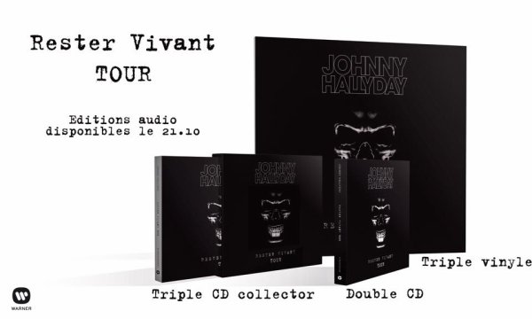 La tournée Rester vivant a été particulièrement longue puisque Johnny a même eu le temps d’enregistrer l’album De l’amour qu’il a intégré à son tour de chant. Il était certain qu’un tel marathon donnerait lieu à une captation live. Voici donc que débarque pour le mois d’octobre un Rester vivant Tour en trois éditions différentes : un simple double CD avec 28 titres, un collector triple CD avec 43 titres ou un triple LP. A noter que les fans devront se ruer sur la version triple qui reprend la quasi-totalité des morceaux (autour de 48) joués durant la tournée. Sortie annoncée pour le 21 octobre. Une captation vidéo devrait s’ajouter au mois de novembre.