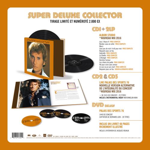 Universal n’a certes plus l’artiste sous son égide, mais la compagnie possède les droits d’exploitation d’un catalogue impressionnant qu’elle compte bien user jusqu’à la corde. Ainsi, la collection Super De Luxe qui propose de belles éditions d’albums anciens avec un nouveau mixage, des prises alternatives et des bonus rares vient s’enrichir d’un quatrième opus (après La génération perdue, Hollywood et Rock n’roll attitude). Il s’agit de l’album Derrière l’amour datant de 1976 et considéré comme un des meilleurs opus du chanteur. Il faut dire qu’on y trouve aussi bien des tubes comme Gabrielle, Requiem pour un fou, Les chiens de paille, Derrière l’amour ou Joue pas de rock n’roll pour moi, mais aussi des titres plus obscurs qui valent le détour comme Rendez-vous en enfer, Le ghetto ou encore Le jour J, l’heure H. Les amateurs de country pourront même apprécier L’étranger et Né pour vivre sans amour. Sur cette nouvelle édition, un nouveau mixage sera encore une fois effectué et la plupart des titres seront dans des versions allongées (attention souvent de quelques secondes seulement), tandis que Requiem pour un fou aura le droit à une version alternative inédite. Pour compléter ce CD, deux autres galettes présenteront le spectacle du Palais des Sports 1976 lui aussi dans une version inédite (et avec un instrumental présenté comme inédit alors qu’il était déjà présent dans une précédente Intégrale Live). Seront également disponibles une version LP, ainsi qu’une version SuperDeluxe Collector avec les 3CD, les 2LP et un DVD exclusif du concert de 1976. Attention, cette dernière version vous fera tout de même débourser 90 euros. Sortie annoncée pour le 14 octobre 2016.