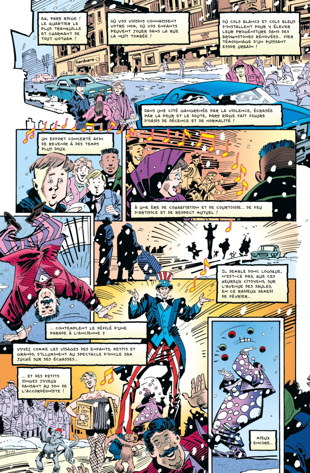 Résumé : Joker, Fini de Rire nous ramène dans les rues de la sombre Gotham. L’hiver a recouvert de neige la ville. Une parade de cirque arpente la rue avec parmi eux un clown jongleur. Tout d’un coup, ce clown pataud, qui tombe sans cesse, se redresse à nouveau et se révèle être... le Joker ! Là, le drame, une explosion qui tue plusieurs personnes. Batman est sur la brèche pour retrouver son pire ennemi qu’il croyait mort.