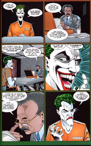 Les deux comics posent des ambiances bien différentes. Fini de rire joue beaucoup sur les voix intérieures des protagonistes. Batman, le Joker et un troisième personnage inattendu. Le récit s’axe vraiment sur le Joker, car Batman semble s’effacer pour laisser le fou meurtrier prendre le devant de la scène et réaliser son rêve... Un récit étrange dévoilant une autre facette du Joker. Une ambiance comme seul J.M. De Matteis sait les poser, au travers de ces monologues, de ces personnages qui se perdent, se cherchent eux-mêmes en traversant une mort qui les régénère, de ces âmes perdues dont on suit le cheminement intérieur. A côté de cela, L’Avocat du Diable fait un peu pâle figure. Son histoire est intéressante, mais elle n’a pas la puissance de la précédente. Le Joker est condamné pour un crime qu’il n’a peut-être pas commis. Et bien sûr, son dernier défenseur va être Batman, qui combat l’injustice, quelque soit le prix à payer. Mais la sauce monte difficilement.