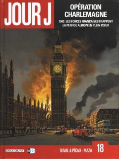 Une fois n’est pas coutume, la série Jour J propose la suite d’un des tomes. Le scénariste Maza, présent sur le tome 14, reprend du service et propose de compléter l’histoire de Oméga, où en 1942 les ligues d’extrême droite européennes achèvent de se liguer contre la Grande-Bretagne. Ne vous y trompez pas, l’Opération Charlemagne est, comme Oméga, une histoire indépendante, mais elle formera avec le tome 14 et un album à venir (Le Crépuscule des Damnés) un triptyque sombre et révélateur des maux de notre société actuelle. Du point de vue de l’originalité de l’uchronie, ce style d’écriture où l’auteur part du principe qu’un événement historique a eu une autre fin, Opération Charlemagne n’est pas le plus innovant de la série. Toutefois, il se rattrape rapidement du côté de l’action, avec un savant mélange d’espionnage, de combats aériens, de romance, d’intrigues politiques et d’évasion.