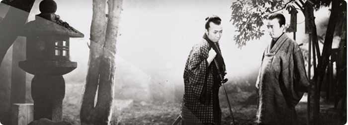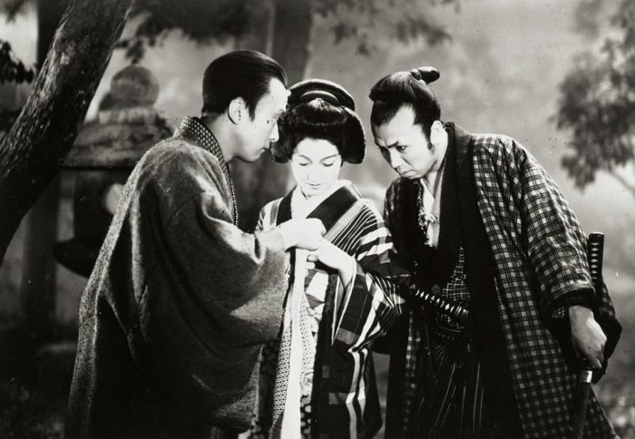 Ils entourent deux cabotins grandioses : Chojiro Kawarasaki, Kōchiyama que rien ne démonte, et Kan’emon Nakamura, plus extraverti dans le rôle de Ichinijo, son acolyte boiteux, samouraï de fraîche date, surpris lui même de son aisance à dégainer le sabre qu’il vient d’acheter (Il sera le barbier Ginza dans Pauvres humains). Ces deux sublimes canailles (pour reprendre le titre d’un film de John Ford, inspiration possible) vont se racheter une conduite en risquant (et en laissant) leur vie pour sauver le jeune inconscient et sa soeur Onami (une délicieuse Setsuko Hara de seize ans dans un de ses premiers rôles).