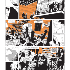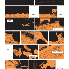 De même, le traitement graphique joue sur les impressions. La bichromie, les points viennent apporter des ellipses, des pauses, et la couleur changeante semble donner une fausse allure de chapitres, alors que ce choix est un hommage aux cinq couleurs de la deuxième édition de Barbarella. Un choix surprenant et quelque peu déroutant, mais qui confère une identité visuelle claire à l’ensemble, comme si une même histoire pouvait se raconter, se nuancer à l’infini, que ce soit au niveau du scénario, ou graphiquement...