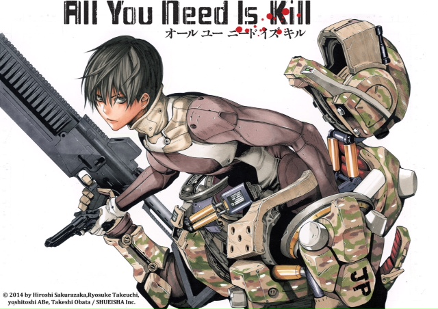 All You Need Is Kill est un roman de Hiroshi Sakurazaka publié au Japon depuis 2004. L’adaptation manga, toute fraîche puisque la publication au Japon a débuté en janvier 2014, est dessinée par le désormais célèbre Takeshi Obata (Death Note, Bakuman) !
