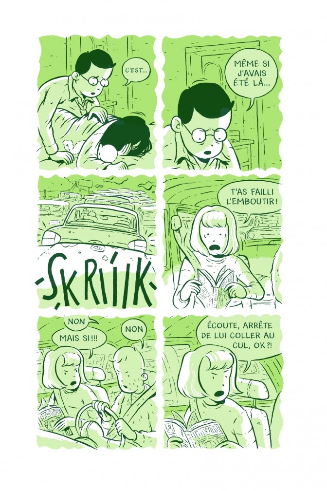 Critique : Comment gérer l’angoisse de l’absence de l’autre ? Et comment cette angoisse de l’absence peut réveiller des peurs enfouies en nous et nous faire percevoir l’autre, voire la réalité elle-même, différemment ? Il aura fallu 20 ans pour que Jordan Crane, figure de la bande dessinée indépendante américaine, réponde à ces questions et mette un point final à Keeping two, récit qu’il a d’abord auto-édité chapitre par chapitre avant que celui-ci ne soit repris par la revue Upright de Fantagraphics. Ce long récit de 320 pages correspond paradoxalement à quelques heures de la vie des personnages. L’étalement volontaire du récit traduit le ressenti de Will, pour qui chaque minute passée dans l’attente du retour de Connie constitue une épreuve. Jordan Crane excelle dans la mise en scène de l’angoisse, marquée notamment par les pensées paranoïaques et morbides qui se succèdent, puis par un ensemble de micro-décisions – téléphoner au magasin, reprendre la lecture d’un roman – pour tuer le temps ou s’enquérir de l’autre. Jordan Crane utilise également les capacités narratives de la bande dessinée en enchâssant son récit principal avec le roman que lisent tour à tour les deux principaux personnages. La superposition des deux histoires renforce la parabole de l’album et constitue un motif d’explication à la paranoïa de Will.