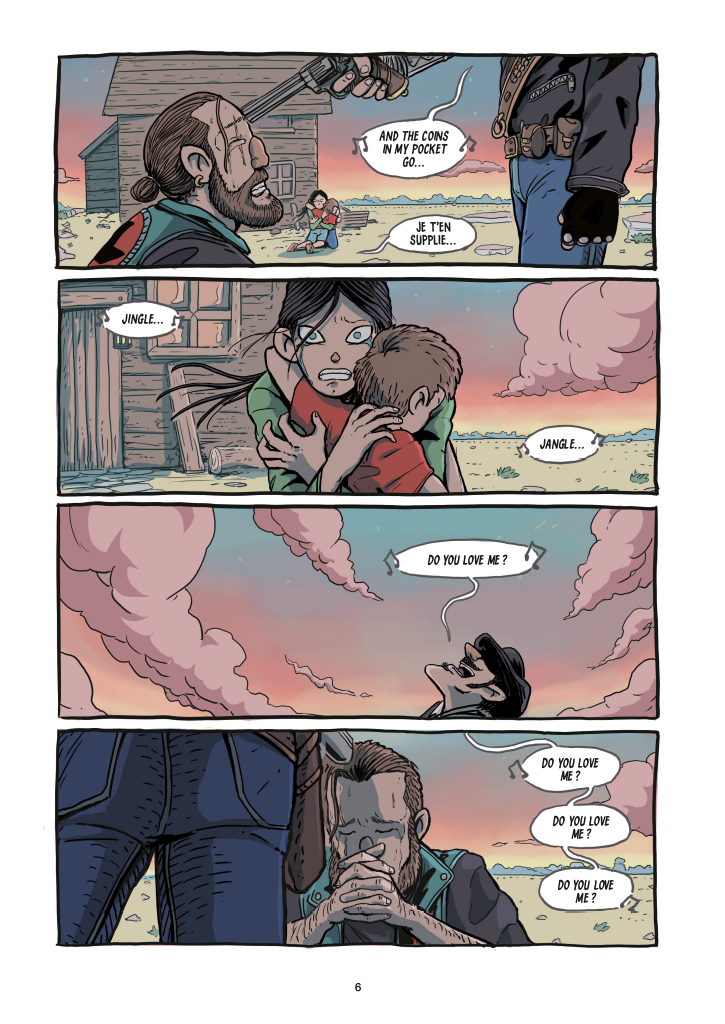 Clairement, et d’entrée de jeu, Kids with guns assume sa folie et son ambition hétéroclite. Carrefour d’influences pop et western, mêlant dinosaures domestiques à la manière d’un Negalyod, des cow-boys façon Bebop, des jeunes enfants aux pouvoirs psys façon Akira et Stranger Things, le tout se mélange dans un univers à la Sergio Leone pas vraiment spaghetti mais plutôt farandole de farfalles. L’auteur italien a visiblement laissé parler ses envies, son imagination et sa fantaisie au moment de coucher sur le papier cette série, pour raconter une histoire qui part dans tous les sens, mais dont les fils épars pourraient bien tôt ou tard se croiser et se rassembler pour donner une consistance plus classique. Ce ne sera en tout cas pas dans ce premier tome, mais pourquoi pas dans une suite non moins rocambolesque, mais un poil plus romanesque (ou pas).