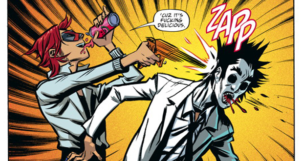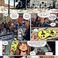 Publié en couleurs, le comic n’hésite pas à assumer un côté choc, à l’image des rebelles du désert qui soignent leur coloration ou leur rouge à lèvres, bien loin d’une ambiance glaciale ou monochrome qu’on imagine pour un monde régi par la dictature ou le désert. Par moment western futuriste, avec des rafales de pistolet en pagaille, par moment annonciateur de l’intelligence artificielle, Killjoys ne cesse de surprendre et d’étonner tout au long de sa lecture.